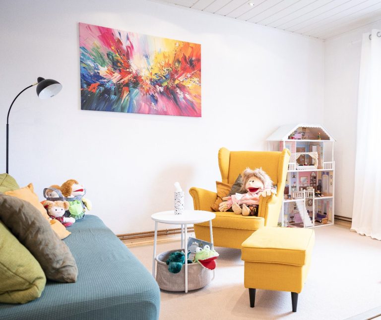 Hier stehen Kinder, Jugendliche, junge Erwachsene und ihre Eltern im Mittelpunkt. Mit einfühlsamer Therapie unterstütze ich den Therapieprozess und die persönliche Entwicklung. Die Räume sind warm und gemütlich gestaltet, damit sich alle in einer häuslichen, behaglichen Atmosphäre wohlfühlen und die Therapie offen, gelassen und sicher stattfinden kann.